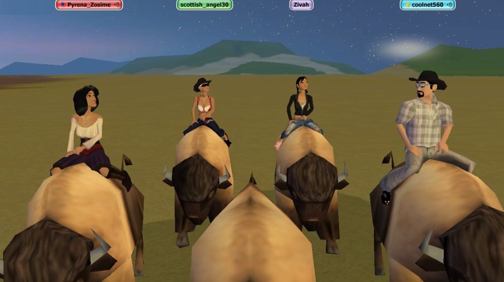 PHOTO TASK #4 – Word on the street from the neighboring Aurora Gulch community is that there is a wild stampede of bison roaring through populated parts of the Aurora Highway. Travelers passing through camp yesterday said their donkey got spooked from the thundering sound of the bison stampede. The poor donkey ran off hee-haw’ing down the highway with three days worth of food and their last roll of toilet paper. Tell your regulators to mount up, because it’s time to let those ranching and rodeo skills shine! Capture a photo of your posse riding a stampede of bison through the middle of the caravan camp. There are several herds out roaming the Neighborhood.