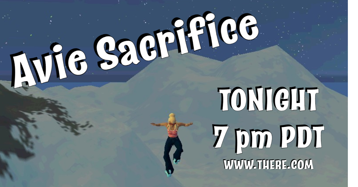 On the eve of every new client release in There.com, it is tradition for the Thereian Community to scale Wilson’s Peak, the tallest mountain in the Virtual World to offer up their Avatars to the There Gods in hopes for a smooth update. Join us tonight at 7:00 pm PDT/10:00 pm EST for Avie Sacrifice!