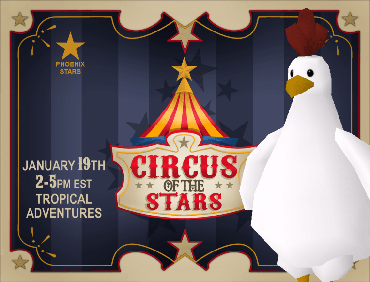 Get ready for an unforgettable afternoon of thrills, laughter, and excitement as the Phoenix Stars proudly present Circus of the Stars! This spectacular event is set to dazzle the Thereian Community on Sunday, January 19th, inside the vibrant virtual world of There.com.