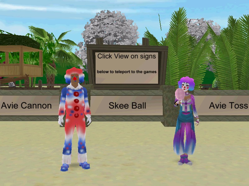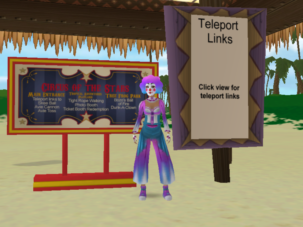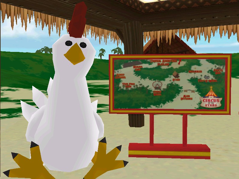 At the entrance of Tropical Adventures you’ll find a map of rides and attractions. Read the information and head on into the park. Look for the Phoenix Star big top tent off in the distance. Make your way towards the tent to the hub of the circus. Here you’ll find an ice cream stand, soda machines, pinball, arcade games a petting zoo and more. Look for signs about the event and locate teleport links to the attractions.