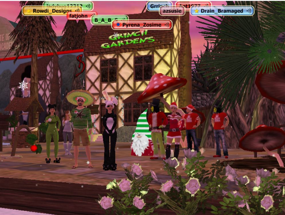 Log in now and explore the wonders of Grinch Gardens in your favorite virtual world There.com. Grab some hot cocoa and friends and take a tour of the festive community. Stroll by the charming gingerbread factory or step into the magical barn and meet Santa’s reindeer. Make sure to visit the awe-inspiring giant snow globe, a breathtaking spectacle of swirling snowflakes and winter magic. At Grinch Gardens you can enjoy a variety of activities, from ice skating to card games. Keep an eye on the Activities Page for special upcoming events.