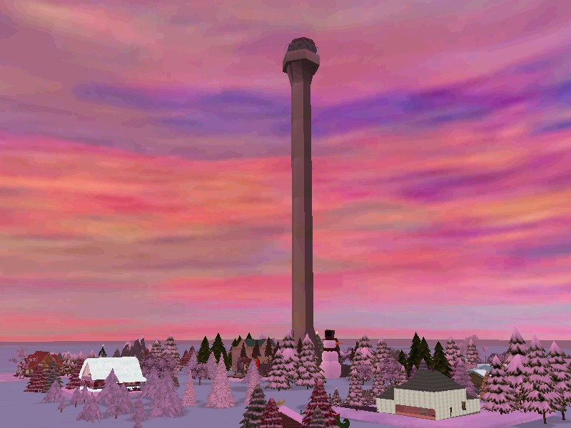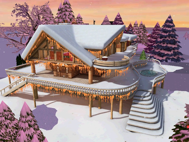 Oh the weather outside is frightful, but inside it’s so delightful! Cozy up next to the fire in your very own winter cabin on Frosty Island. Enjoy snow-covered terrain and the beautiful pink, purple and orange skies of this delightful island in There shaped like a snowman. Make yourself at home in a two-story winter cabin located in Santa’s Village. This lovely home offers a dining room, living room, family room and upstairs loft. Complete with outdoor lights and frozen icicles.
