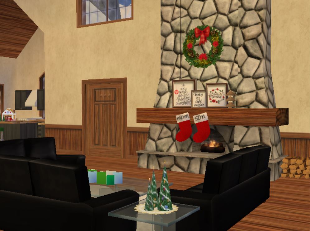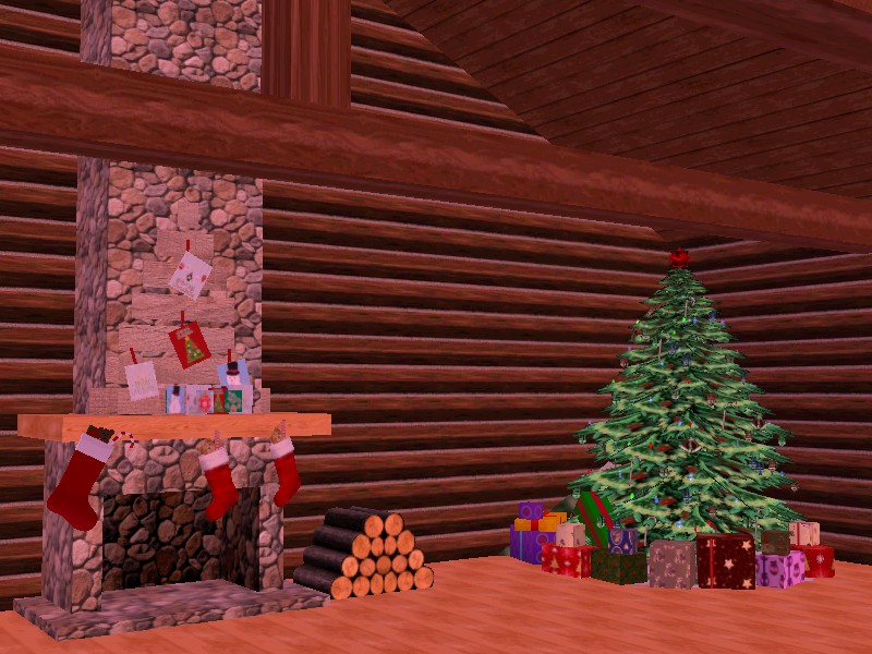 Christmas Lodge: A larger, more luxurious option for hosting virtual gatherings. With its festive decor and spacious layout, the lodge is the ideal spot for entertaining guests.