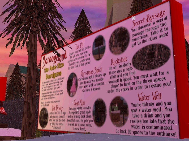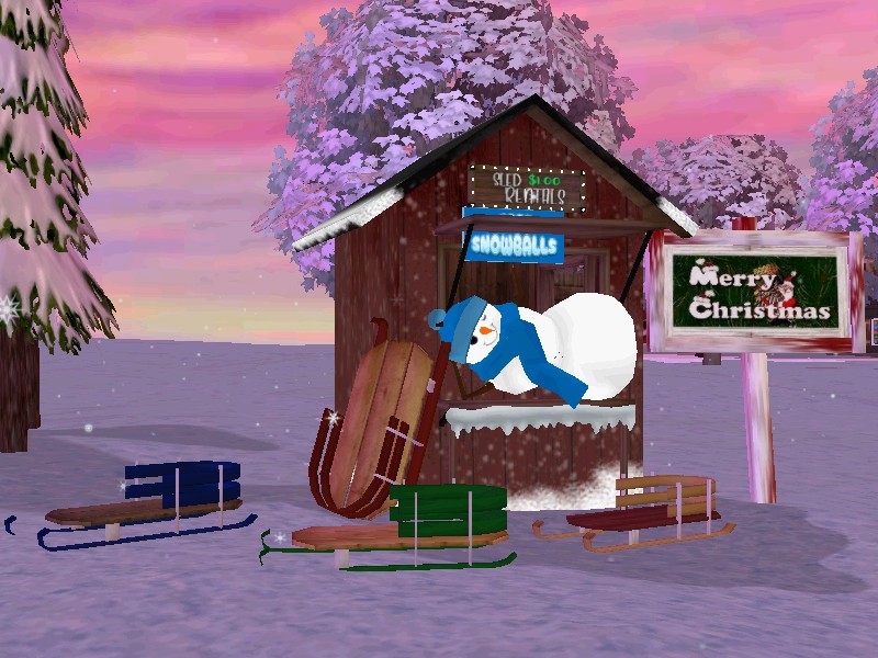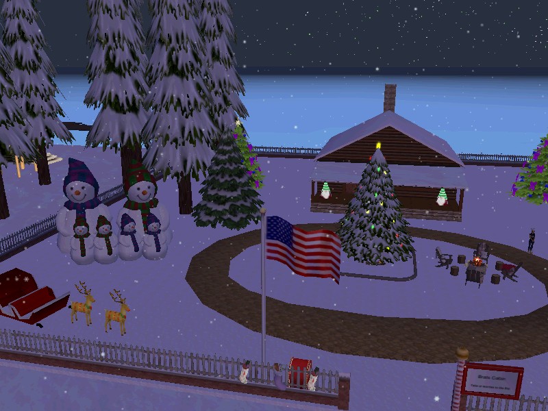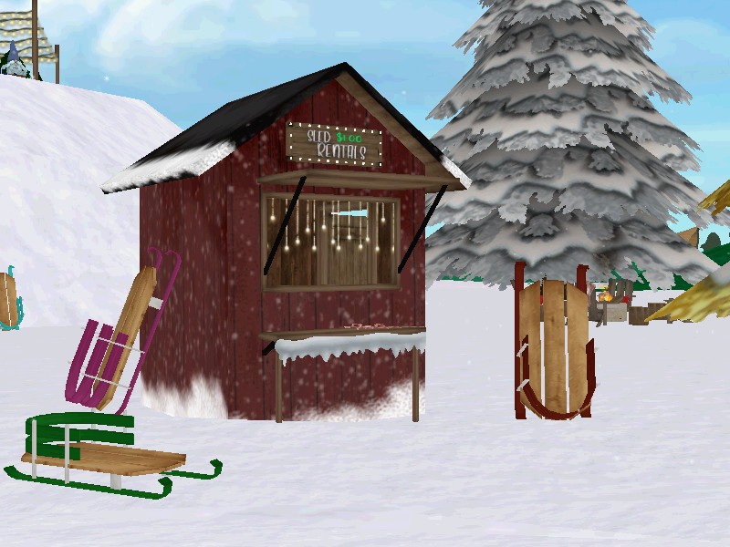 The snow-covered cabin is included free with the monthly rental of a one-acre Development Lot. Join the Santa’s Village Development Group first before picking out your new homestead. View the winter cabin listings to find the perfect spot. To rent a holiday cabin for the winter, step into the Lot and go to This Place on your menu bar and clicking information about For Rent. Here is a helpful article about setting up your Development Lot in the Santa’s Village Development Zone.